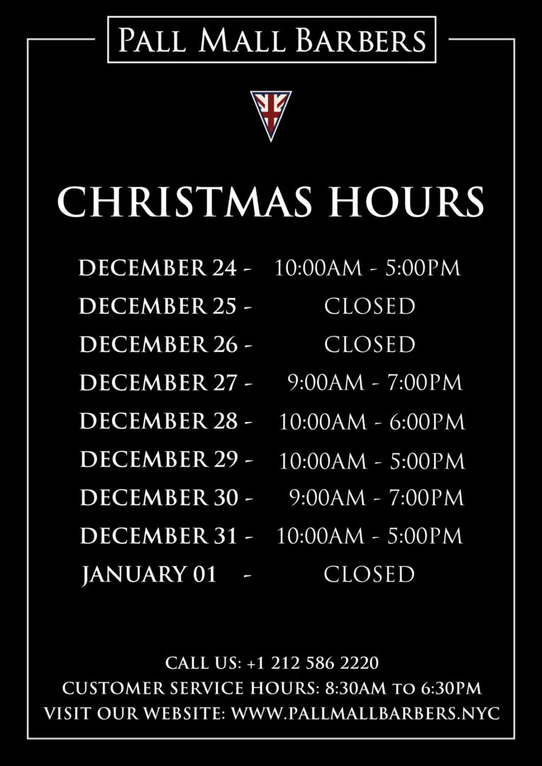 Pall Mall Barbers New York – Christmas Hours