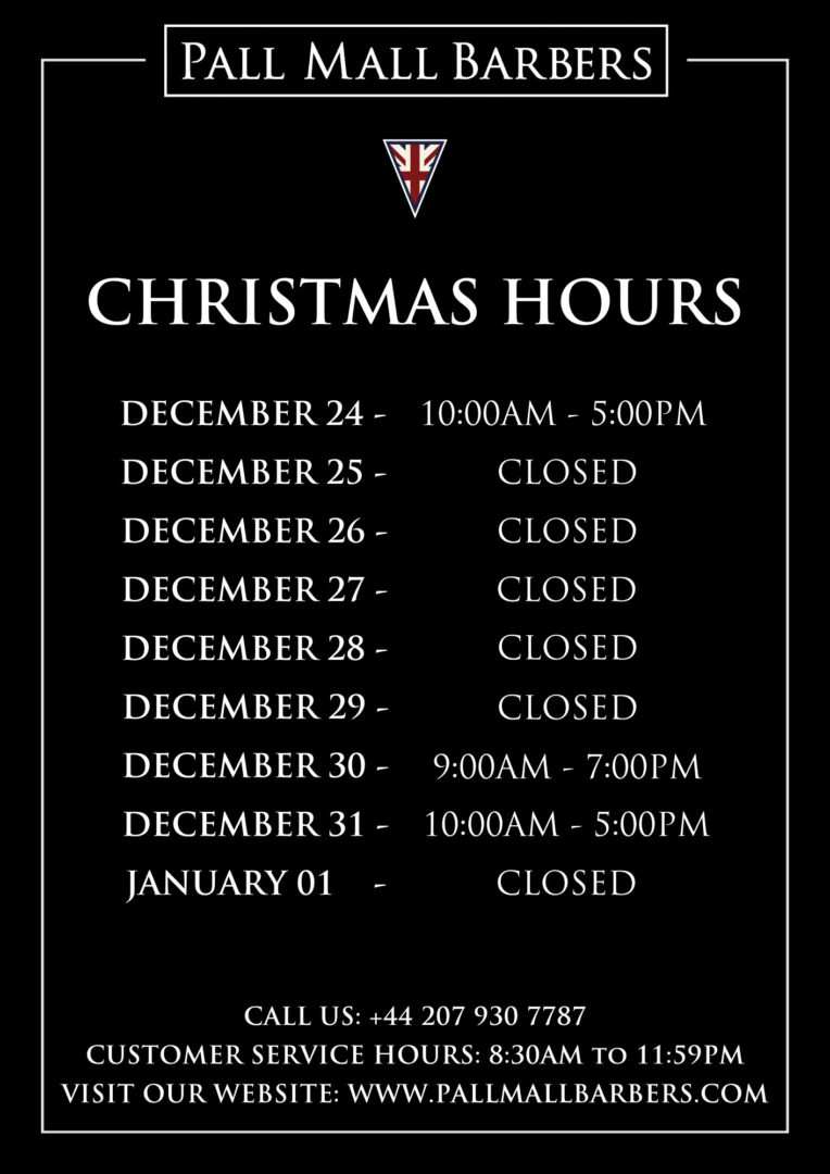 We know that Christmas can be a busy time of year, so we’ve updated our opening hours for 2022 so that you can take care of your grooming needs. Pall Mall Barbers is the perfect place to book an appointment with one of our experienced barbers – we’ll make sure you leave looking dapper and feeling great! So what are you waiting for? Book now and let us help you get ready for a stress-free holiday season!