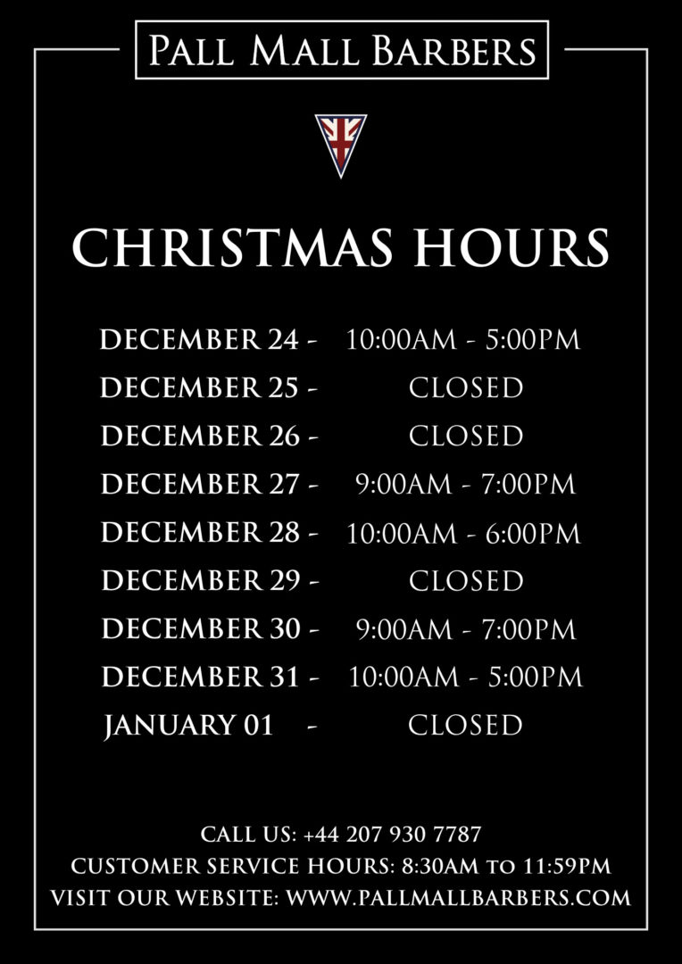 Pall Mall Barbers Westminster – Christmas Hours