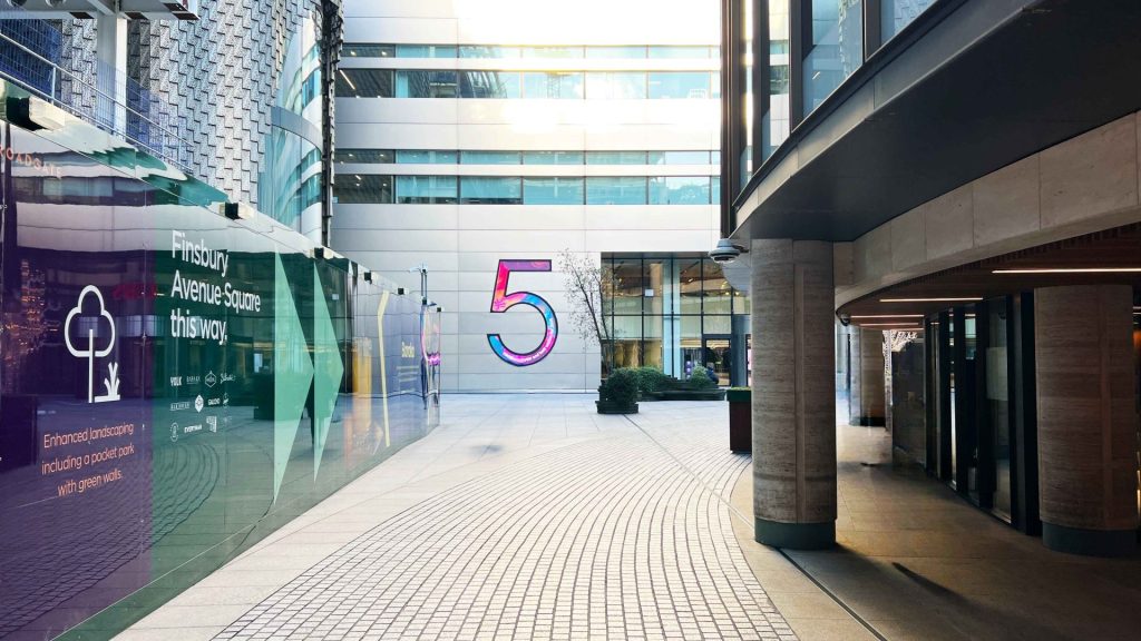 Follow the Finsbury Avenue direction, and you will reach Finsbury Avenue Square on your left on Primrose Street.