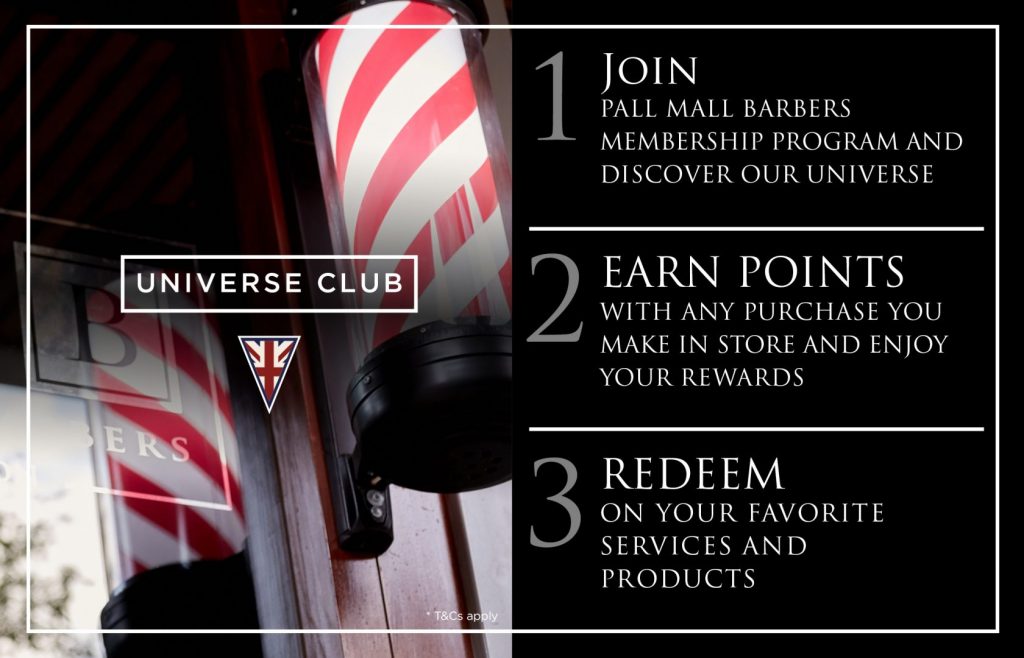 By participating in the Universe Club Loyalty Program, participants agree to be bound by these terms and conditions, which may be updated from time to time by Pall Mall Barbers.