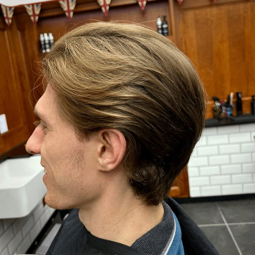 Typically, if you are someone with wavy hair or hair with a slight curl to it, this haircut will suit you. But if you are someone who likes to run straight out the door in the mornings, this isn’t for you: the hairstyle does require a little maintenance and will need styling in the morning. A classic, neat hairstyle that will work perfectly for anyone who likes to look smart at work.