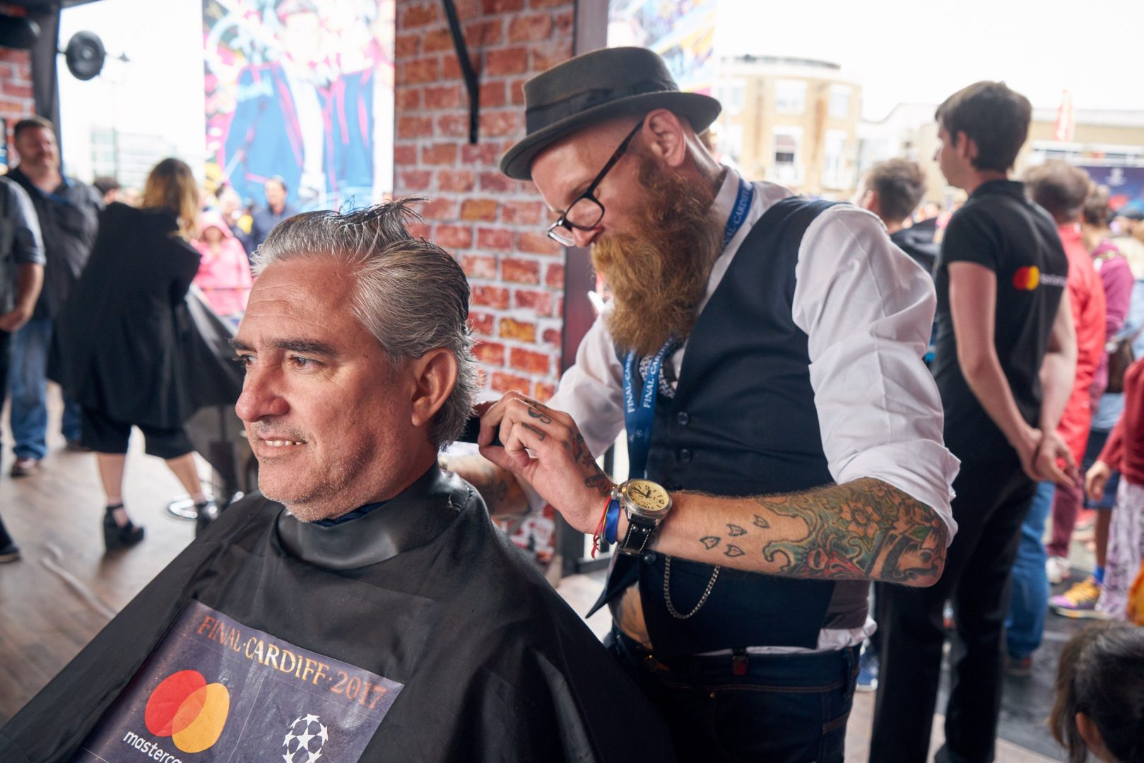Our popup barbers act as a ‘Madness’ having portraits and a networking hub where customers flags sculpted into their hair to a engage with each other and chance to win tickets to the final, breaks up the event by adding a or ‘Priceless’ an unforgettable PMB-quality experience with all the fanfare of the football.