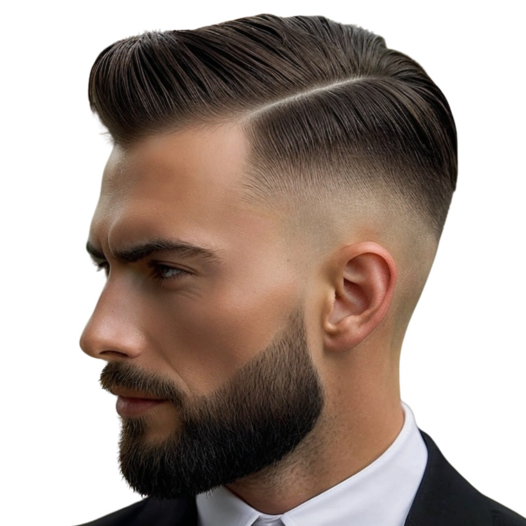 One of the key advantages of this hairstyle is its universal appeal. Whether you have straight, wavy, or curly hair, the side part with a fade offers a structured, well-groomed look that requires minimal maintenance while exuding maximum impact. The precise parting line adds definition and a tailored appearance, making it particularly popular among clients looking for traditional barbers in London who specialize in classic cuts with a modern twist.