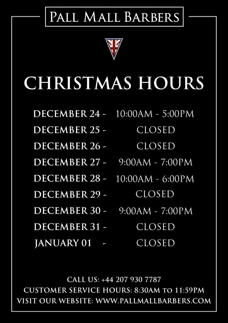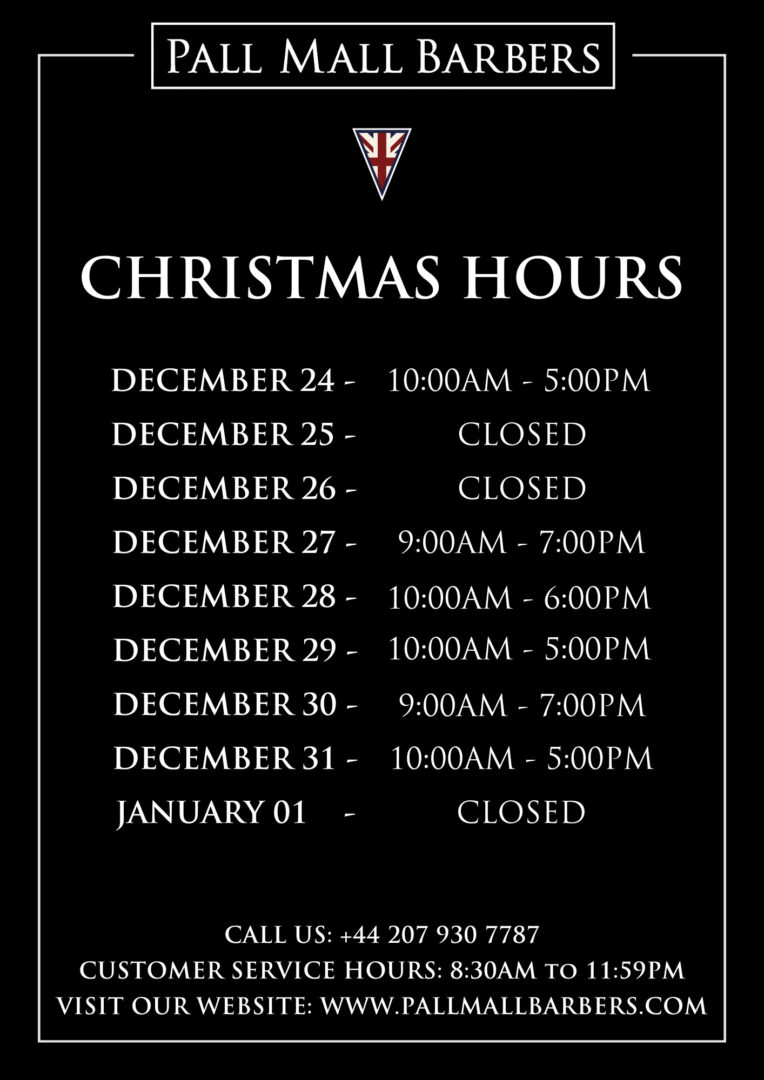 Pall Mall Barbers Westminster – Christmas Hours
