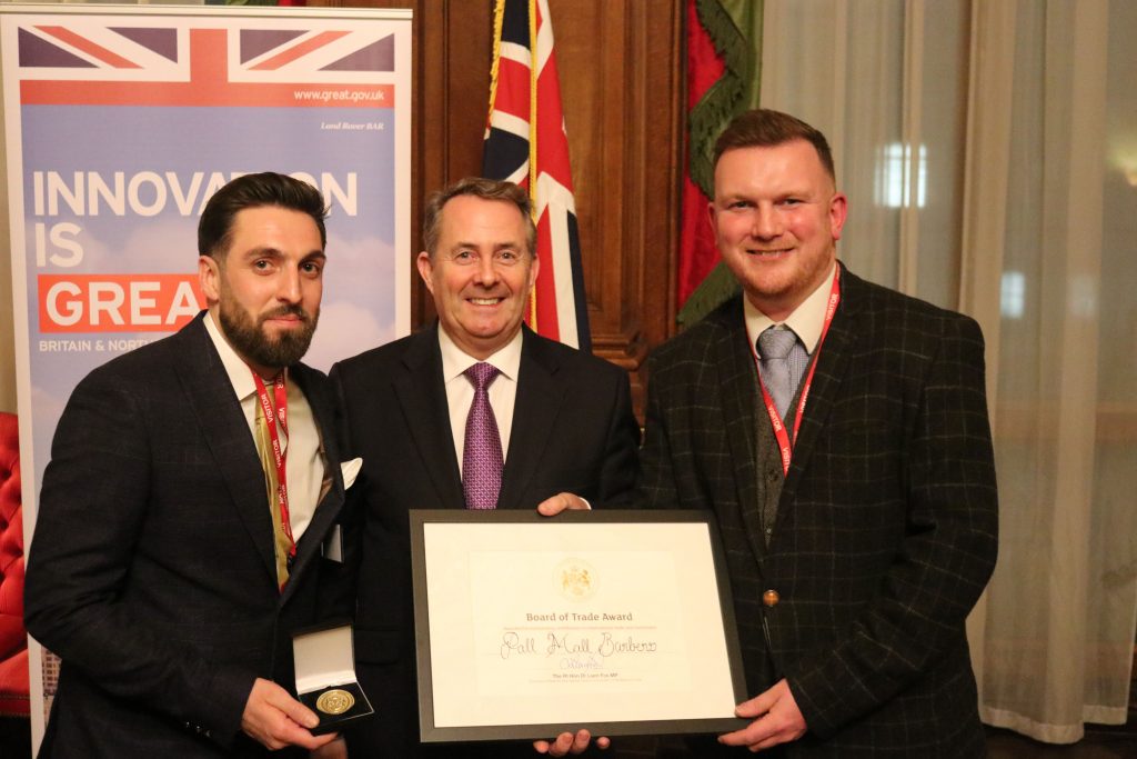 Our General Manager Daniel Davies and Head Barber of our Bishopsgate Barbershop Christian attended the award ceremony, making Pall Mall Barbers proud. The award was presented by the Right Honourable DR Liam Fox MP, who is Secretary of State for the Department for International Trade & President of the Board of Trade.