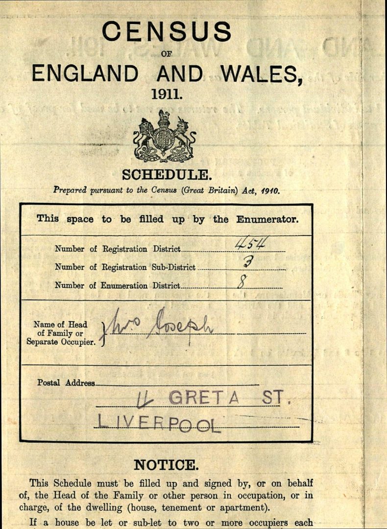 The 1911 census document for 4 Greta Street stated that the Liverpool house had a total of five rooms at this point in history. London