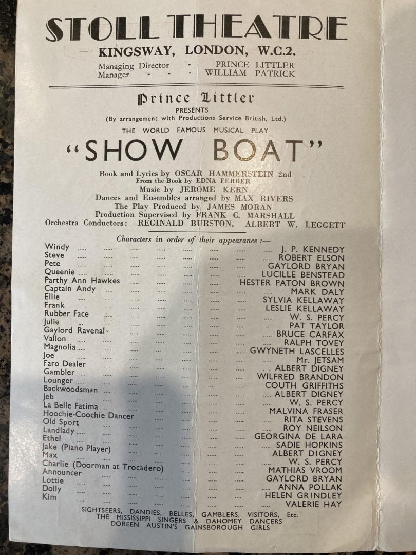 In the year 1943 Malvina Fraser starred in the wartime production of the famous musical Show Boat in London’s West End. Malvina played the part of La Belle Fatima in the show that was performed at the Stoll Theatre in Kingsway.