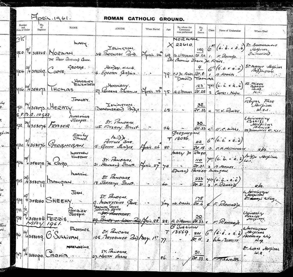 Malvina was laid to rest on Roman Catholic Ground at Islington and St Pancras Cemetery in North London.