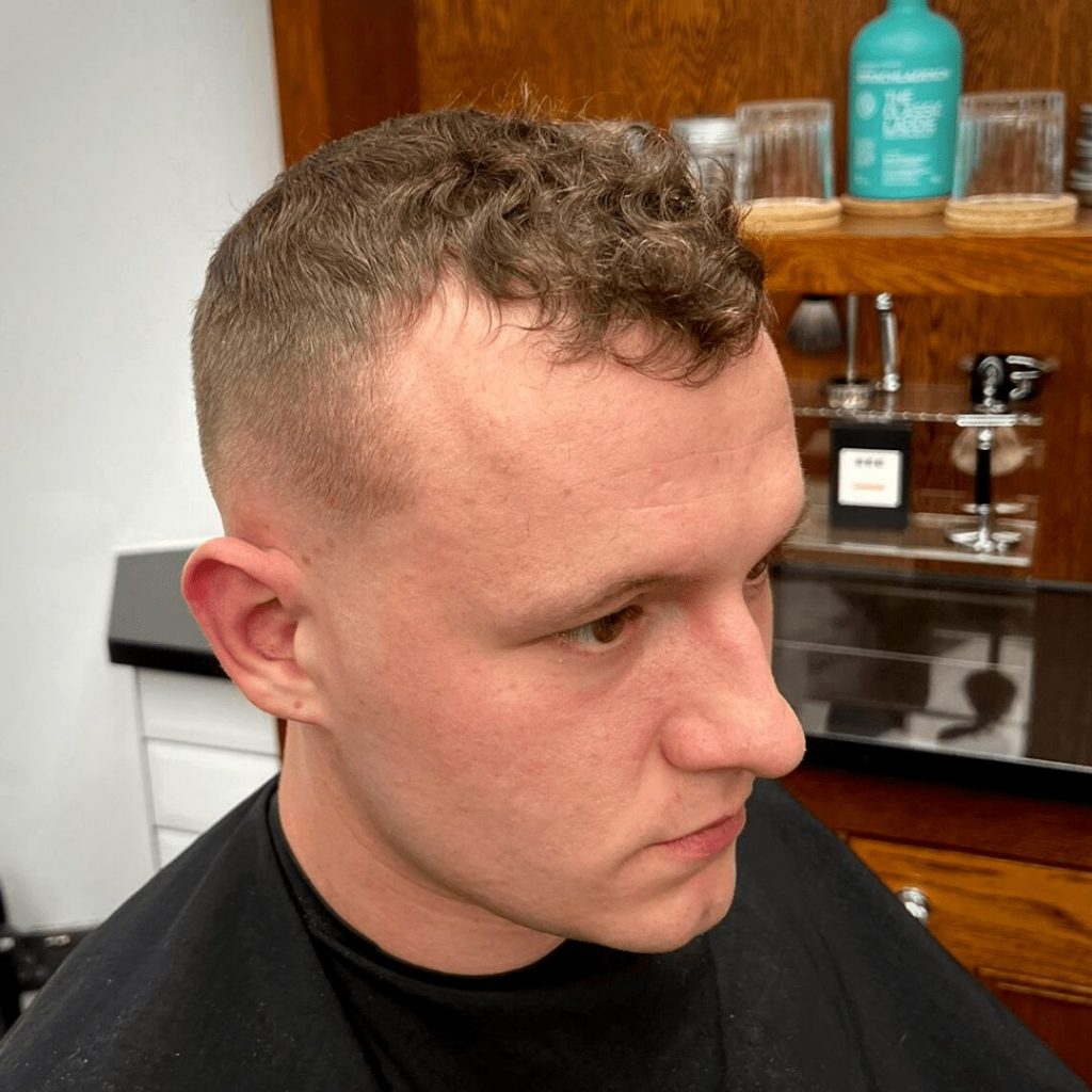 Men’s fades and other short men’s hairstyles take a bit more planning and attention than their cold-weather counterparts. Harry from our Westminster store advises, “When you’re asking your barber for a shorter cut, make sure they consider your facial features to help gauge the right gradation for your haircut. This is really important in determining whether a shorter look will suit you. One hairstyle can flatter one client, and do no favours for the next.” Not only that, but fade cuts (or any short men’s haircuts, for that matter) need regular maintenance to keep them looking sharp. Ideally, you’ll want to visit your barber every three weeks for a tidy-up, unless your desired summer look is Andre Agassi at Wimbledon, circa July 1992. Here are a few (better) ideas to get you started.