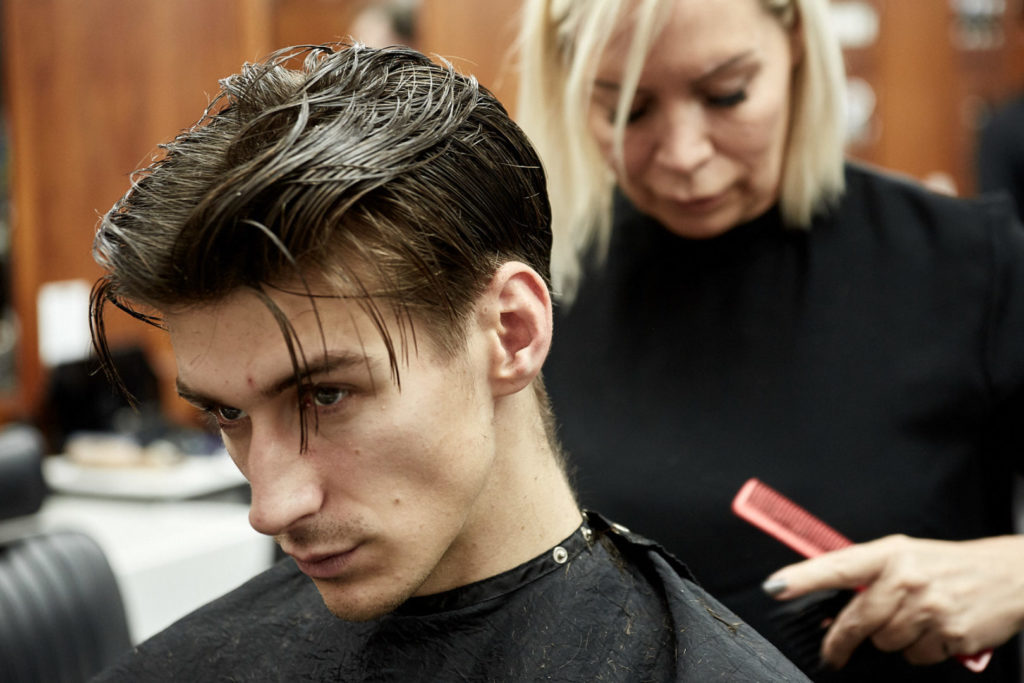 Ensure your barber leaves lengths on the top and back and sides and cuts a gentle taper using a scissor over comb technique into the sideburns and the nape of the neck.