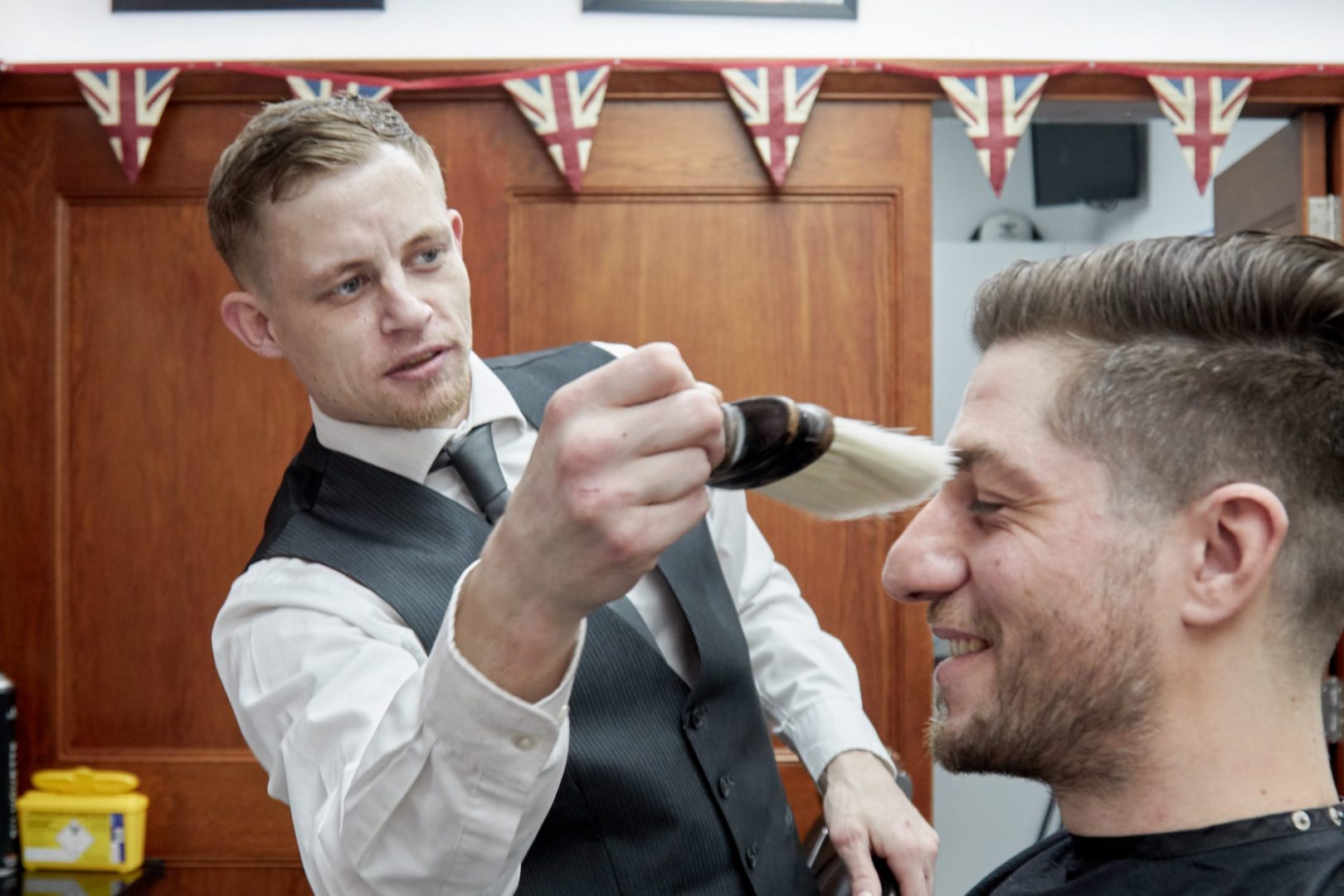 He mentions that he has experienced other barbers near Regents Place before but nothing compares to us, the best barber in Fitzrovia – that’s why he has pledged his allegiance to Pall Mall Barbers Tottenham Court Road. He came to our Fitzrovia barber shop needing touches of magic to turn his messy bed-head look into something smart and stylish. Our Fitzrovia barbers were on hand to make it happen for him! After relaxing into our legendary leather chair and letting out a sigh of relief, Alex discussed his desired look with the Fitzrovia barber.
